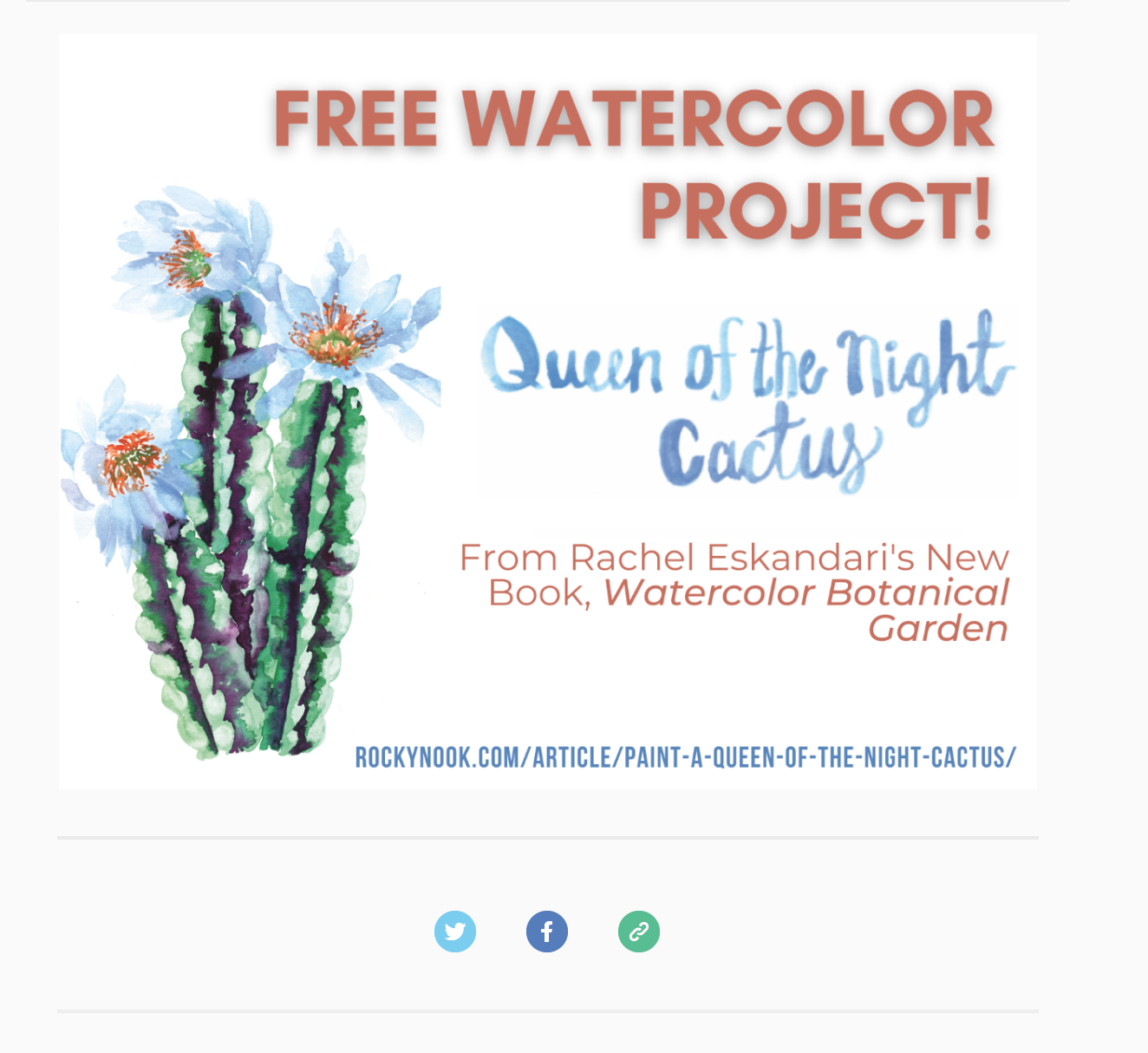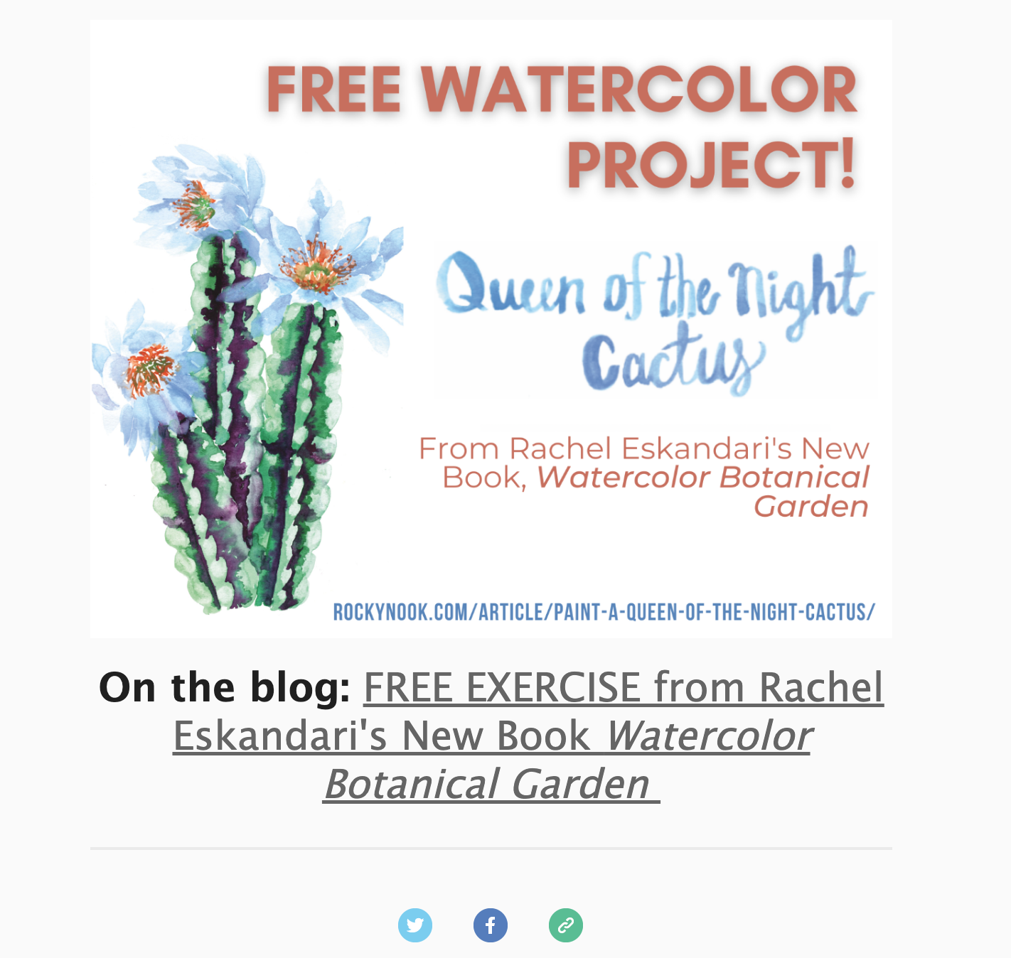 WHAT: For this campaign I used the vehicle of desert landscape and cacti to connect older, back-list photography titles with the newer list of drawing and painting titles. It consisted of two emails, one social ad (not featured), and a free painting resource and exercise from the book. Its CTA asked audience to purchase books themed around desert, landscape, and floral photography, as well as new books on painting.