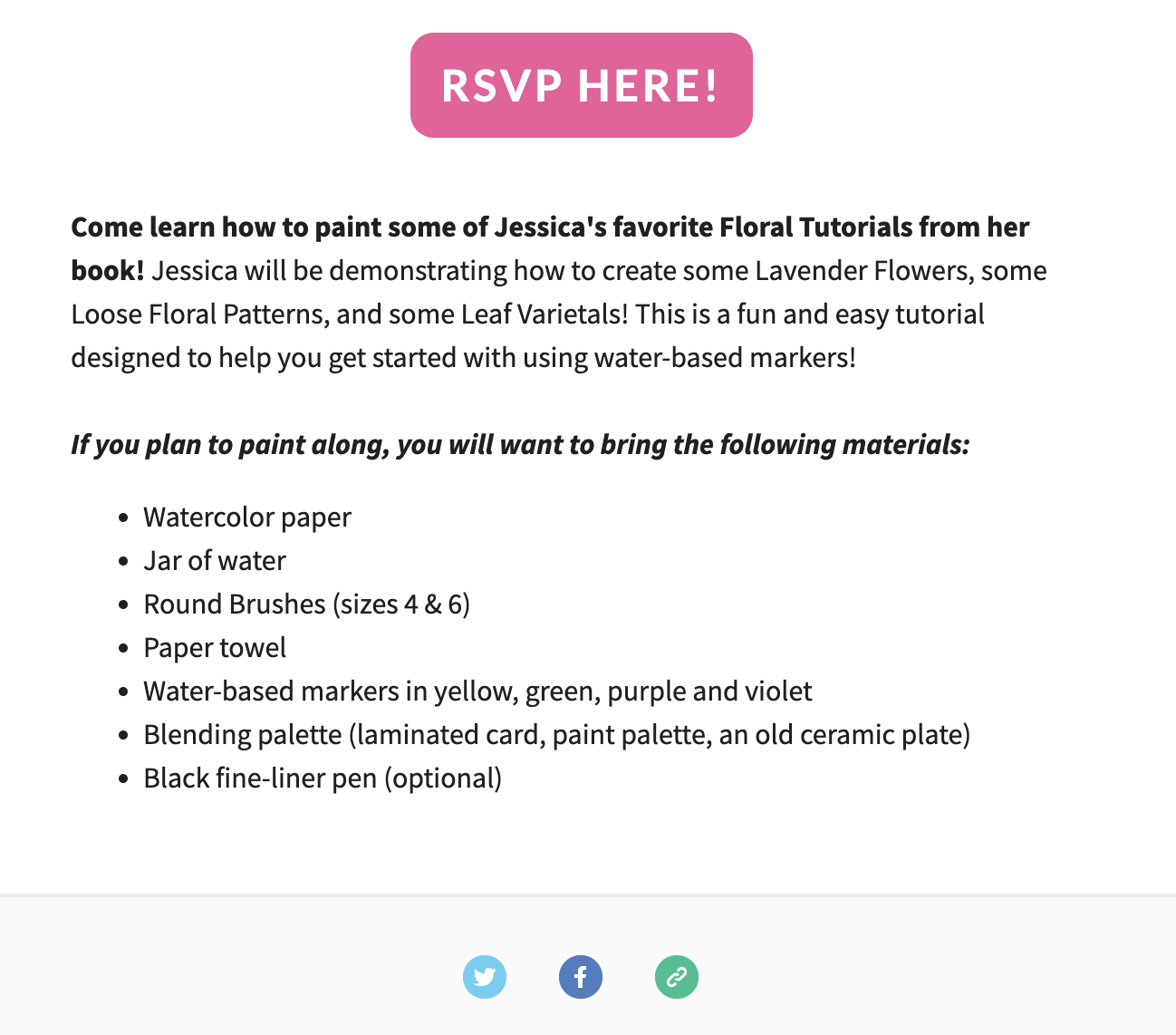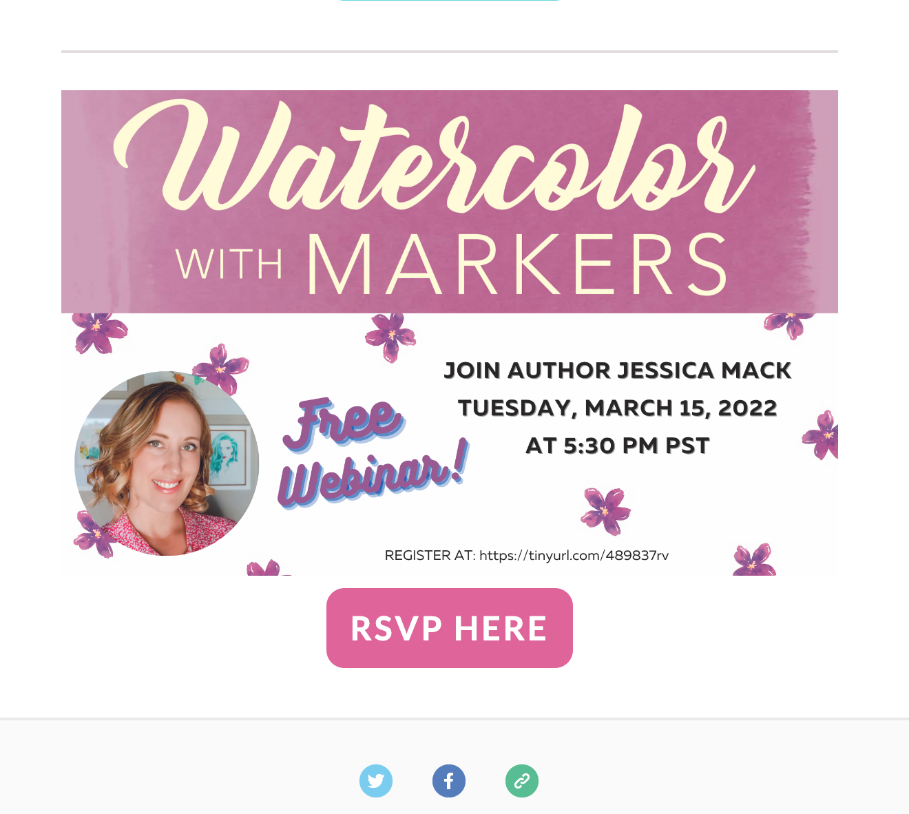 WHAT: For this campaign I introduced the new book, Watercolor with Markers, in both print and eBook format. I included a number of different ways for audience to engage with and get to know the book and its contents, including providing banners and links to the author’s upcoming book webinars, showcasing free tutorials to get started on painting, and detailing descriptive book copy. The campaign’s CTA asked audience to purchase the book, sign up for either or both of the author’s webinars, and download free content from the book.
